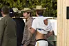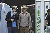 Både onsdag og torsdag dukkede festivalgæsten op med en stor gruppe af venner i festivalens Backstage Village, også kaldet mediebyen, hvor kun pressen, kendisser og særligt inviterede har adgang.