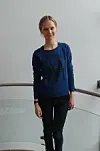 Elsker den draperede underdel og det hvide og blå sammen.